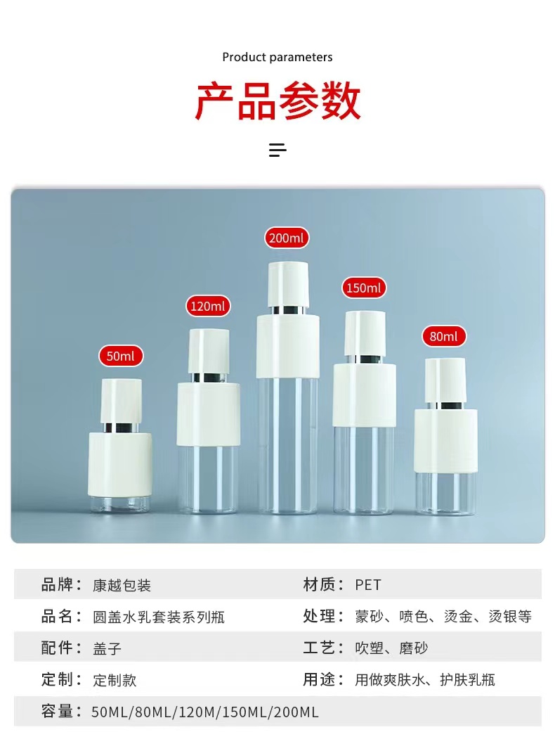 康越新款pet塑料水乳套裝瓶旋蓋爽膚水瓶乳液瓶化妝品分裝瓶空瓶