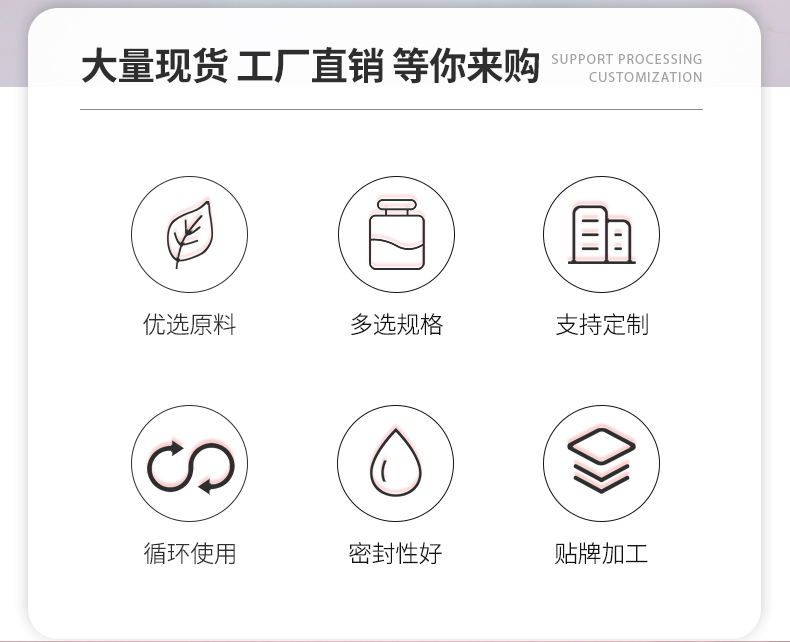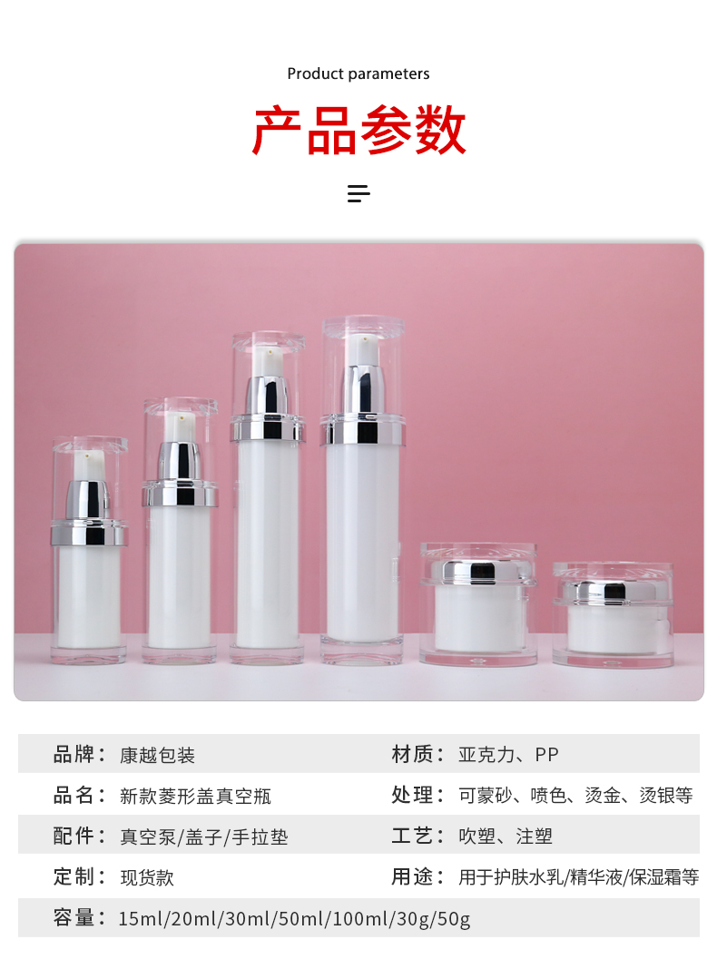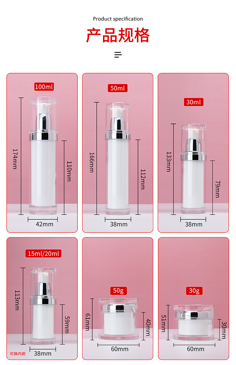 容量 15ml,20ml,30ml,50ml,100ml,30g膏霜瓶,50g膏霜瓶
