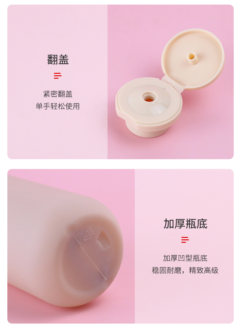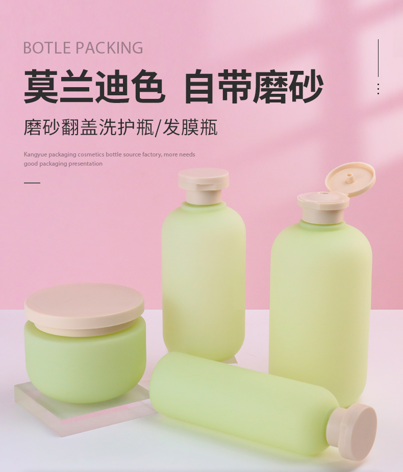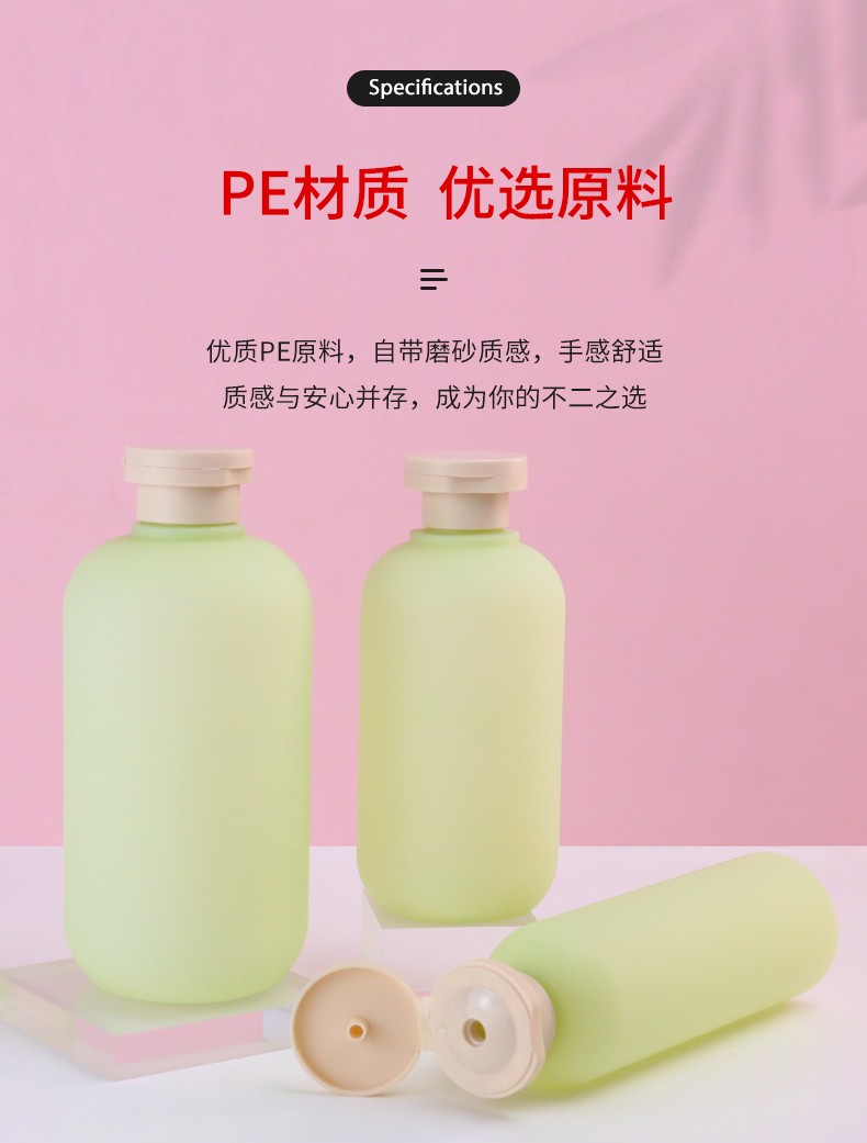 現貨PE毛絨圓瓶300ml洗護翻蓋瓶身體乳乳液瓶洗發(fā)水沐浴露瓶包材