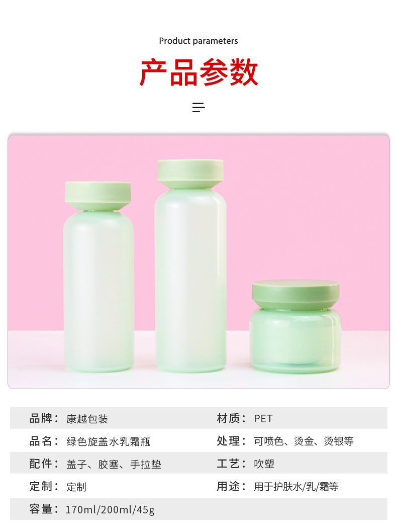 PET塑料分裝瓶170ml 200ml乳液瓶化妝品套裝瓶爽膚水瓶45g膏霜瓶