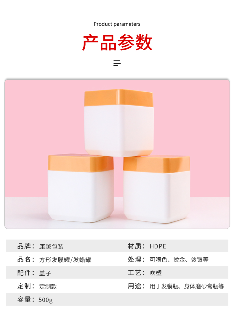 PE廣口塑料膏霜瓶 500ml方形發(fā)膜瓶 焗油膏瓶 磨砂膏罐化妝品包材