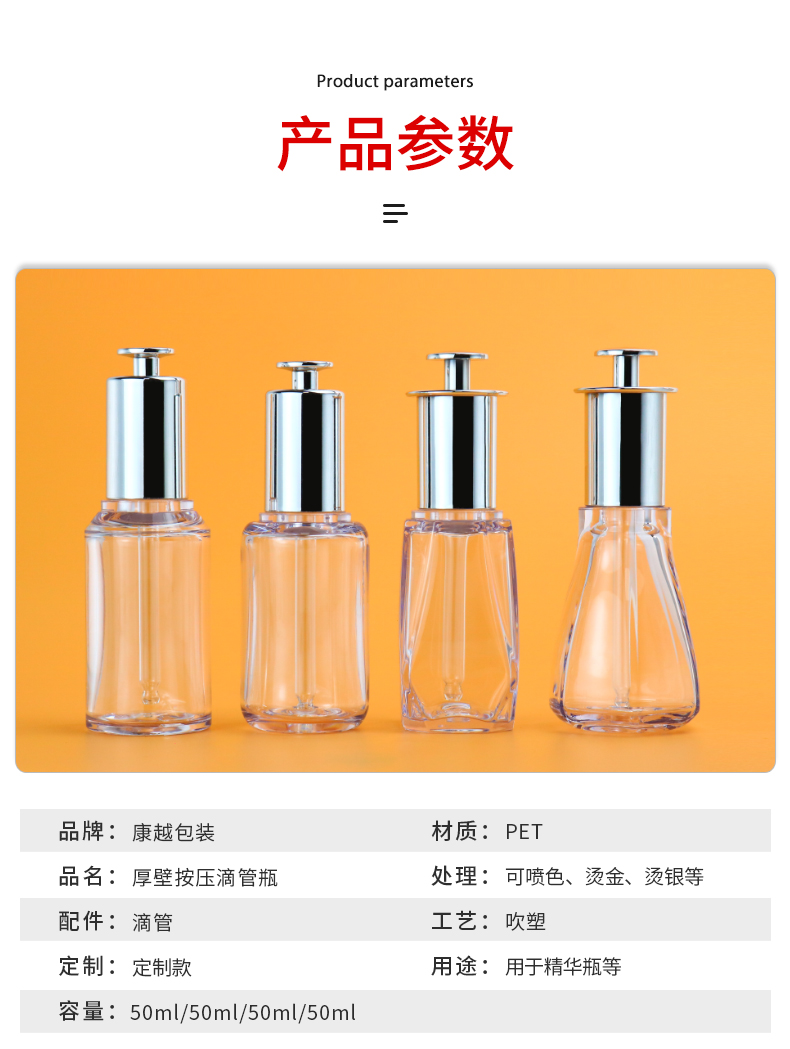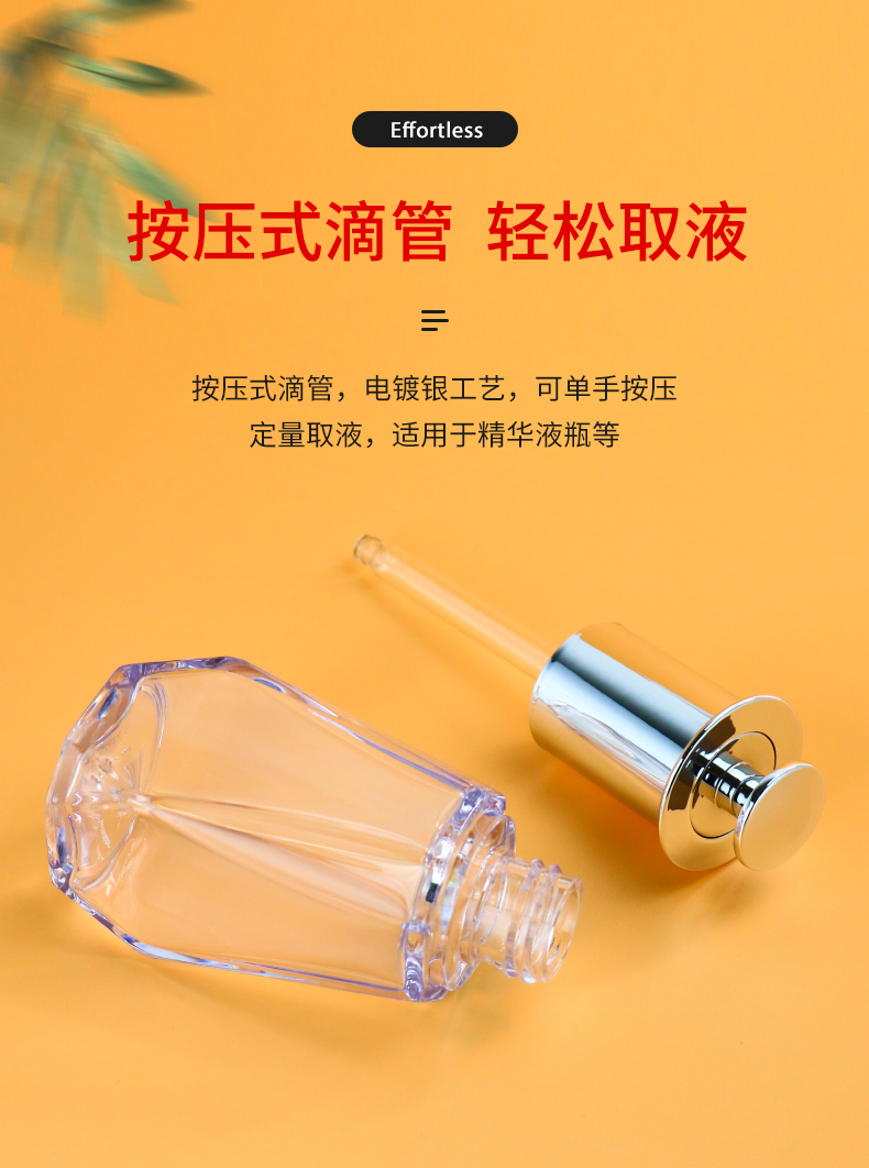 PETG高透精華液瓶 50ml棱形塑料厚壁滴管瓶 化妝品護(hù)膚精油瓶包材