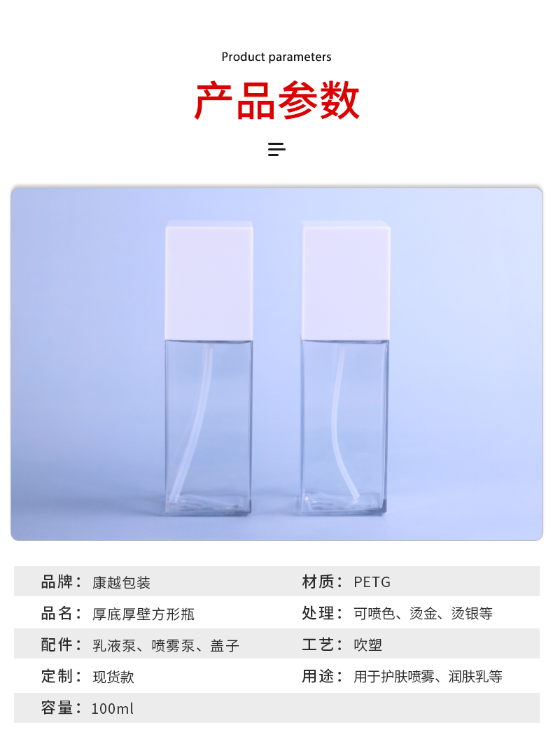 現(xiàn)貨精華水噴霧瓶 PETG四方厚壁透明乳液瓶100ml爽膚水分裝瓶包材
